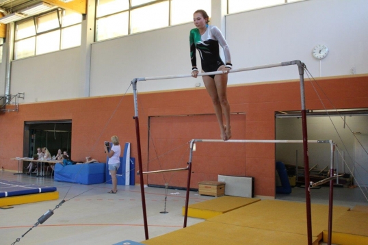Am letzten Gerät dem Stufenbarren zeigten die Mädels ebenfalls gut geturnte Übungen. Leider mussten sie auch hier einen Sturz hinnehmen.