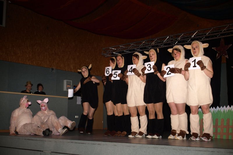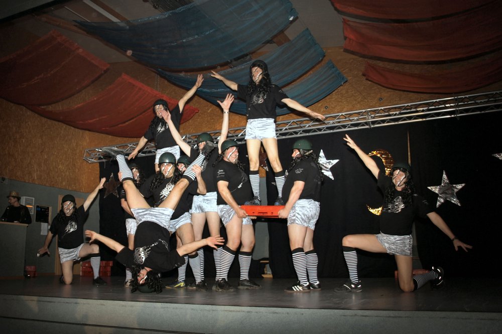 Den Auftakt machten die Gardemädels des TSV, die sogleich die Stimmung in der Halle auf Hochtouren brachten. Bereits beim nächsten Programmpunkt durfte das Publikum mit Piggeldy und Frederick aus dem Sandmännchen und den Volleyballern Schäfchen zählen, bevor die Tanzgruppe "Delicious" unter Schwarzlicht die Gäste in einen "Albtraum" stürzte. Als Sandmännchen bzw. "Sandfrauchen" gelang es den Mädels von "Dark Destination" allerdings schnell, alle Entglittenen wieder in süße Träume zurückzuholen. Auch der Auftritt der turnenden Engel wurde begeistert aufgenommen. Die rockenden und vor allem haarigen Gazellen - die Männergarde - des TSV wird Keiner so schnell vergessen. Die schweren Jungs begeisterten wieder einmal die Massen mit neuem Programm im Military Look. Den Schwarzlichteffekt nutzte dann auch "Time 2 Dance", um ihre weißen Kapitänsuniformen in Szene zu setzen; die Halle tanzte mit zu aktuellen Hits wie "Treat me like a lady", bevor alle Akteure zum großen Finale nochmals auf die Bühne durften und verdient tosenden Beifall ernteten.