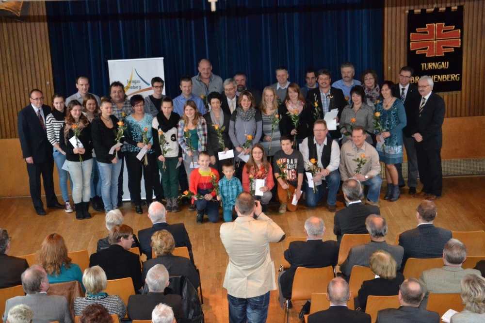 Aus dem Vorjahr wurde die Ehrung mit der Gauehrennadel in Bronze für Patricia Stempfle nachgeholt. Die Bronzene Ehrennadel des DTB gingen an Christine Bart, Ingrid Fischer, Ewald Fischer, Gerhard Groß, Verena Hischke, Steffi Killler, Daniela Klonau und Sonja Maier. Die Gauehrenadel in Bronze ging an Rebecca Paulik und Birgit Weißenburger. Der Turngauehrenbrief ging an Simone Schmegner und Vorstand Uwe Breitmeier.