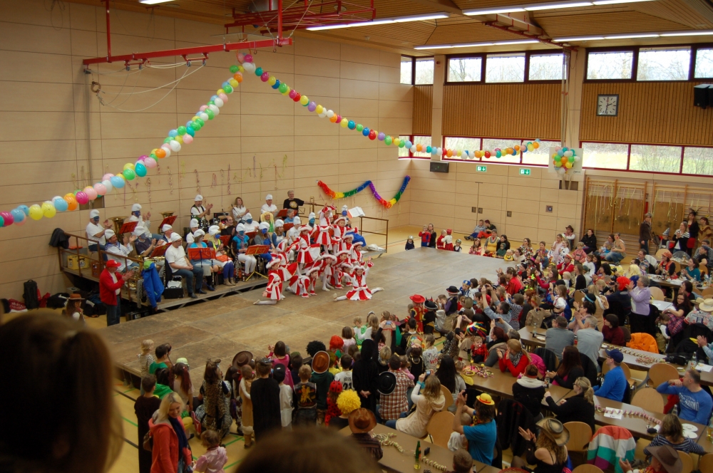 Der Mittelpunkt des bunten Treibens ist und bleibt an diesem Faschingssonntag das kleine Narrenvolk, welches wild und heftig zur Musik tanzte, hüpfte und durch die Halle tobte.