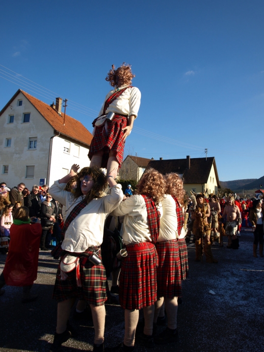 Zu den Highlights des Tages gehörten unter anderem die sehr gelungenen Auftritte der Dergelesgarde sowie der Prinzengarde des TSV mit rhythmisch und technisch anspruchsvollen Formationen zu mitreißender Musik. Das närrische Volk forderte natürlich Zugaben von den kleinen und großen Gardemädchen.