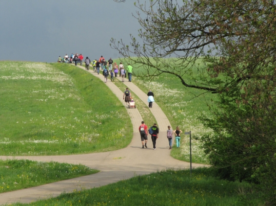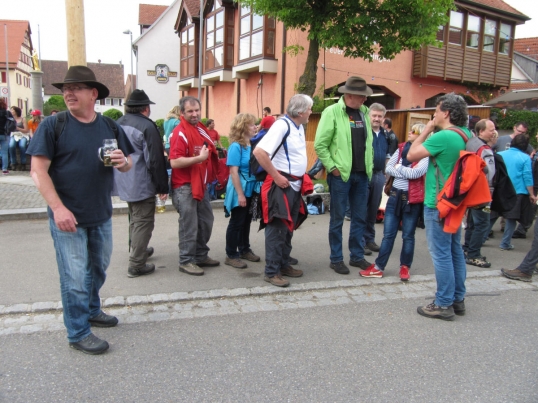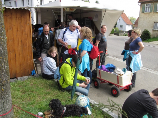 Traditionell trafen sich die Wanderer des TSV Böbingen zur Maiwanderung. Bei idealem Wanderwetter ging kurz nach halb zehn Uhr die Horde mit knapp 45 Teilnehmern, Bollerwagen und einem Hund auf die Strecke.