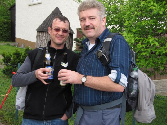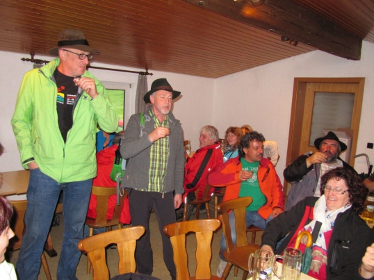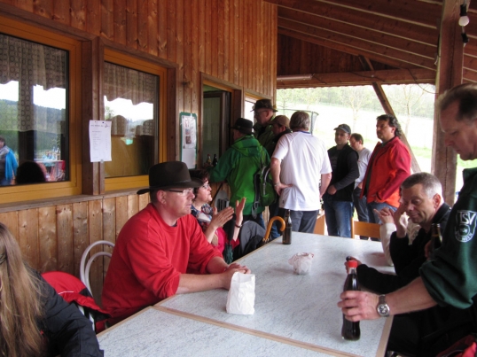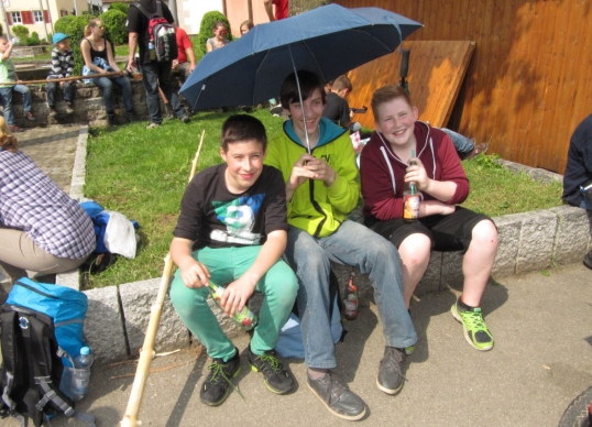 Gut erholt ging es dann auf die letzte Etappe. Wir durchquerten Leinzell und machten uns an den Aufstieg nach Iggingen mit kurzem Halt bei der Feuerwehr. Das letzte Stück nach Böbingen hinunter meisterten auch die Kleinsten mit links. In Böbingen angekommen legte man noch einen kurzen Halt im Haagweg bei Stehles ein. Frisch gestärkt ging es auf die letzte Etappe zum Böbinger Schützenhaus. Das Wetter spielte den ganzen Tag hervorragend mit. Kaum beim Schützenhaus angekommen, legte ein Gewitter mit Hagel los. Bei Steak, Wurst und Bier ließ man die gelungene Wanderung dann gemütlich ausklingen. Besonders herzlicher Dank ging an unseren Wanderwart Gerhard Groß für die tolle Organisation und gute Vorbereitung der Turner-Wanderung.