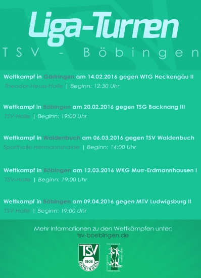 Die nächsten beiden Wettkämpfe werden beide in der TSV Halle Böbingen stattfinden, am 12.03. und am 09.04, jeweils Samstagabend um 19:00 Uhr.
