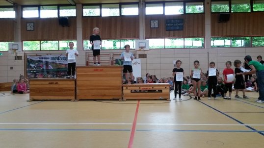 Am Ende des Turn- und Spielfesttages erhielten alle Kinder eine Urkunde mit Medaille und eine Frisbee.