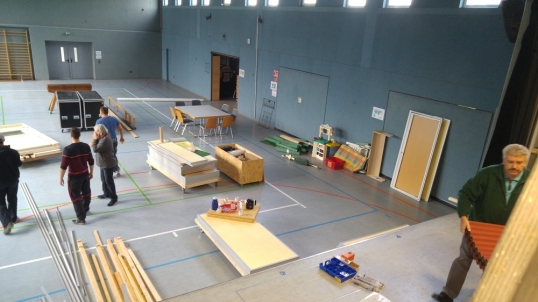 Am vergangenem Samstag, den 15.10.16, trafen sich die Theaterspieler in der TSV-Halle zum Kulissenaufbau. Alle halfen tatkräftig mit und nach einem wohlverdienten Vesper wurde das Bühnenbild vervollständigt. Natürlich fehlen noch viele Kleinigkeiten , die nach und nach dazukommen werden, um die Bühne "wohnlich" zu gestalten. Aber nun können endlich die Proben auf der Bühne beginnen, denn es sind nur noch 6 Wochen bis zur Premiere! Unsere Gaukler sind schon hochmotiviert und geben ihr Bestes, damit am 26.11.16 Text und Mimik sitzen. Wer sich das diesjährige Theaterstück "Die Million im Schuhkarton" von Albert Kräuter nicht entgehen lassen will, kann sich am 05.11.16 von 14-15 Uhr in der TSV-Halle Karten im Vorverkauf besorgen.