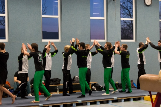 Zum letzten Wettkampf der Saison 2017 kämpften die Turner des TSV Böbingen gegen die zweite Mannschaft des TSV Lustnau. Schon vor dem Wettkampf war den Böbingern der zweite Platz nicht mehr zu nehmen. Eine geringe Chance auf die erneute Kreisligameisterschaft war dennoch gegeben, da die bisherigen Wettkampfergebnisse der Lustnauer durchaus auf Schlagdistanz lagen. In den zwei Wochen vor dem Wettkampf meldeten sich mit Christian Betz und Alexander Uhl zwei Stammturner krank, die für sichere Punkte gesorgt hätten. Aufgrund der Verletzten wurden mit Kevin Breitmeier und Timo Feucht erneut Nachwuchsturner eingesetzt, welche den Wettkampf mit stabilen und sauber geturnten Übungen bereicherten. Zum Einsatz kam auch Nick Ebbinghaus, der nach einem mehrmonatigen Aufenthalt in Südamerika ein tolles Comeback feierte. Trotz einiger kleiner Fehler und den niedrigeren Ausgangswerten der Böbinger, lagen die Jungs aus dem Remstal nach drei geturnten Geräten mit nur 2,15 Punkten (122,4 :120,25) hinter der Mannschaft der Neckargemeinde. Im laufe des Wettkampfes zeigte sich dann aber eine deutliche Überlegenheit der Lustnauer, welche am Ende zu einer Niederlage der Böbinger mit einem Ergebnis von 247,4 : 236,8 führte. Letztlich haben sich aber beide Mannschaften für den Relegationswettkampf um den Aufstieg von der Kreisliga in die Bezirksliga am Samstag den 29.04.2017 in Kircheim/Teck qualifiziert.Für die Böbinger wird es nun schon fast zur Gewohnheit, beim Relegationswettkampf anzutreten. Letztes Jahr ging es aus der Bezirksliga wieder zurück in die Kreisliga. Ob in diesem Jahr ein Wiederaufstieg möglich ist, bleibt abzuwarten. In jedem Fall trifft man beim letzten Wettkampf der Saison auf die befreundeten Mannschaften aus Bolheim und Ingersheim, die beide um den Verbleib in der Bezirksliga kämpfen. Wie gewohnt fährt zu diesem Wettkampf ein Bus, sodass all diejenigen, die die Mannschaft unterstützen wollen, kostenfrei zum Wettkampf kommen. Abfahrt ist am Samstag um 6:30Uhr am Kreisel der Römerhalle. Um die Anwohner der Römerhalle durch an- und abfahrende Autos zu schonen, bittet der TSV darum, entweder Fahrgemeinschaften zu bilden oder am besten zu Fuß oder mit dem Rad zur Römerhalle zu kommen.