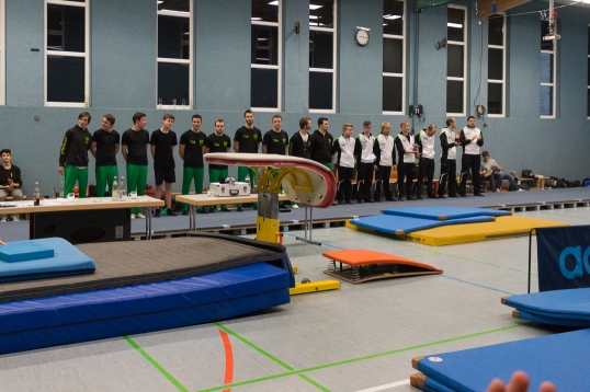 Gemeinsam mit ca. 30 mitreisenden Fans trat die Mannschaft mit dem Omnibus ihre Anreise an. Das Einturnen begann pünktlich um 13:30 Uhr, der Wettkampfbeginn war um 14:30 Uhr.