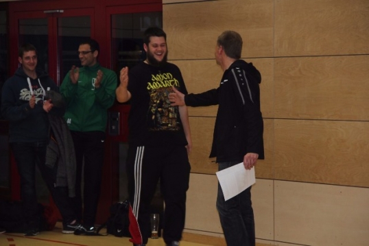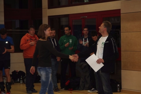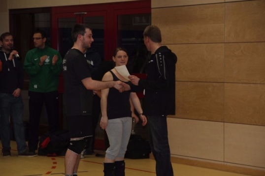 Im Spiel um Platz 1 begegneten sich letzten Endes die Mannschaften „Mittwochsspieler“ und „Quitschi Quatschi“. Beide Mannschaften gingen hochmotiviert ins Spiel, woraus ein spannendes Spiel mit schönen und abwechslungsreichen Spielzügen resultierte. Am Ende konnte sich jedoch die Mannschaft „Quitschi Quatschi“ durchsetzen und durfte bei der anschließenden Siegerehrung den verdienten Pokal in ihren Händen halten. Nachdem alle Mannschaften ihren Preis und ihre Urkunde erhalten haben, klang der Abend gemütlich und in schöner Runde im Vereinsraum der Römerhalle aus. Alles in allem war es wieder ein gelungenes Freizeitturnier mit sportlicher und friedlicher Atmosphäre und jeder Menge Spaß.